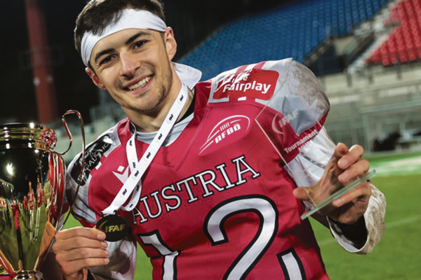 Als Ballverteiler und Taktgeber ist der Quarterback die Schlüsselfigur im American Football. Sich als Österreicher auf dieser Position zu etablieren, ist besonders schwer. So gut wie alle heimischen Teams setzen hier auf bestens ausgebildete Exporte aus den USA. Alexander Reischl hat es trotzdem geschafft. Der 23-Jährige ist bei den Salzburg Ducks groß geworden und hat mit ihnen 2021 die Silver Bowl gewonnen − als Receiver und Backup-Quarterback. Nach seinem Wechsel zum ELF-Team der Vienna Vikings konnte er zwar viel von seinen US-Kollegen lernen, aber nur wenig Spielpraxis sammeln. Die bekam er erst bei den Danube Dragons, die er heuer als Quarterback ins Finale der heimischen Liga und zum Titel führte. Das große Saisonhighlight folgte dann im Oktober. Nachdem er im Trainingscamp seine internen Konkurrenten ausgestochen hatte, feierte er beim EM-Final-Four in Krefeld sein Debüt als Quarterback des Nationalteams und holte gleich Gold. Um sich auch noch den Traum von Olympia zu erfüllen, versucht er nun sein Glück im Flag Football.